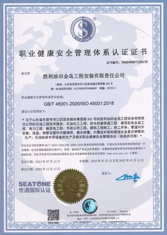 胜利油田金岛工程安装有限责任公司为中石化集团胜利油田分公司孤岛采油厂改制企业,创立于上世纪80年代,是一家集管道防腐、保温、工程施工于一体的多元化股份制企业,是中国工业防腐蚀技术协会会员单位。公司位于山东省东营市河口区孤岛镇,地理位置优越,注册资金1亿2千万元人民币。